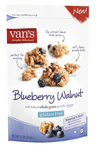 | 2 of 2 people found the following review helpful By tutorMATT (Los Angeles, CA) - See all my reviews Verified Purchase This review is from: Van's Simply Delicious , Blueberry Walnut Granola, 11 oz (Grocery) Van's Blueberry Walnut Granola is delicious. One heads up -- and this should not dissuade you from purchasing this product -- but it arrives as one chewy block of granola. This is not a bag of clusters. It mushes together to form a soft, chewy, block of goodness. Thus, it's not the easiest to sprinkle over yogurt for example. You've got to pull off hunks. That said, it's the best granola I've ever had. Highly recommended. 1 of 1 people found the following review helpful This review is from: Van's Simply Delicious , Blueberry Walnut Granola, 11 oz (Grocery) This is my absolute favorite granola, and I eat granola daily. I love the chewy clumps, you can break apart. It tastes delicious and is gluten free. I don't buy it for that reason, I just tried it and loved it. I make special trips to Wal-Mart to by it as it is only $3.69 there per bag. I wonder why it's so expensive on Amazon? I generally find Amazon has some of the best prices. At any rate, I highly recommend this granola! Both flavors blueberry walnut, and cranberry almond. Verified Purchase This review is from: Van's Simply Delicious , Blueberry Walnut Granola, 11 oz (Grocery) Worth it, worth it, worth it! I had never seen this in any store and a friend mailed it to me (we moved abroad recently), it was so good I had to order my own. It very tasty by itself or added to plain yogurt with honey. I even take it in my car when I need a quick snack. It's very sticky so make sure you have a way to clean your hands though ;-) |